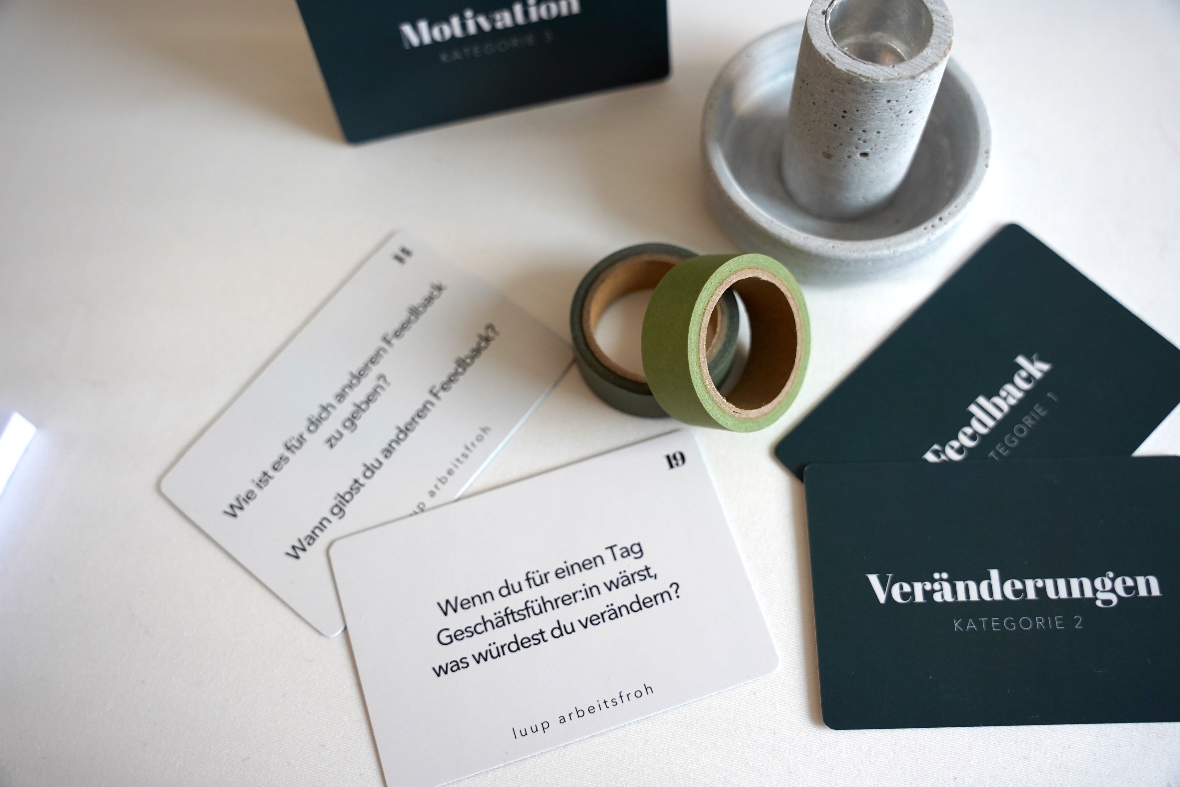 „Ich war anfangs skeptisch – ich bin einfach ein anderer Typ. Aber dann habe ich die Karten bei unserem monatlichen Gespräch eingesetzt. Mein Gegenüber hat eine Karte gezogen und 10 Minuten später waren wir mittendrin in Themen, die sonst nie Raum bekommen. Das Team war begeistert. Und als ich sie meinem Chef gezeigt habe, konnte er gar nicht mehr aufhören zu lesen. Jetzt haben wir für alle Führungskräfte im Unternehmen ein Set gekauft.“ Victor, Bereichsleiter, Softwarehersteller